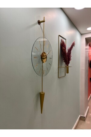 LED Kristal Cam Tiktok 40 Cm GOLD- Modern Dekoratif Sarkaçlı Metal Duvar Saati