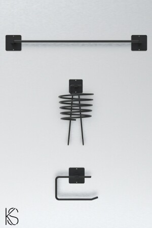 متجر MNZ-Kılınç ملصق 3 قطع معلقة مُجفف الشعر الأسود ، رف الحذاء ، حامل ورق المرحاض ، مجموعة الحمام. محتوى الحزمة: