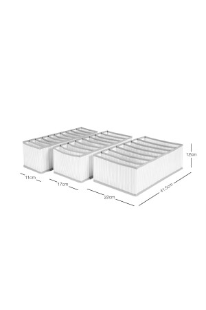 يتم بيع المنتج كمجموعة من 3 أدوات. يتضمن الحزمة منظمة الدرج 1 مع 10 فصول تبلغ 11x41-5x12, قطعة واحدة مع 8 فصول