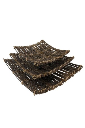 مجموعة من 3 أطباق ثمرة مستطيلة ومقاسمة مصنوعة يدويًا من MNZ مع عصي خشبية