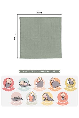 MNZ- هذا المنتج يتضمن 3 75x75 سم غطاء المسلين. مصنوع من 100٪ القطن. يمكن استخدامه في 4 مواسم. لديه نسيج ناعم ومت