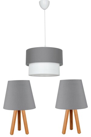 مجموعة من 3 شموعات ومظلة مصباح خشبية على طاولة السرير / أنتراتيت EV-119