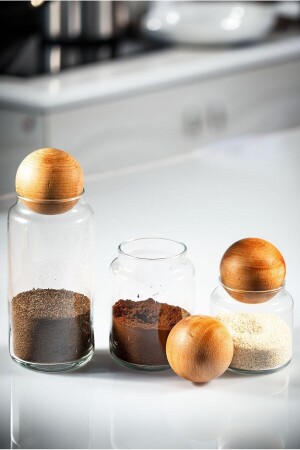 مقبضات من الخيزران 3 قطع زجاجية مجموعة وعاء خفيفة وعلبة معكرات مجموعة 0.8 لتر 01