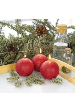 مجموعة من 3 شموع كرة حمراء دائرة مع رائحة فانيلا. دائماً قص الوقود إلى طول 5 ملي متر لتجنب تكوين الدخان. لا تترك أبداً شمعة تحتر