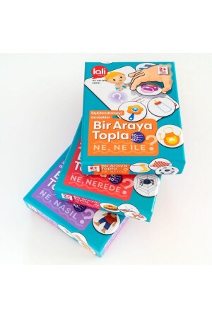 تم إعداد مجموعة التجميع لتعليم الأطفال الصفات والمكان والاتجاه وكلمات الرابط مع 3 ألعاب مربع مختلفة. ماذا كيف ، ماذا مع ماذا وما حيث تحتوي كل مربع على 5