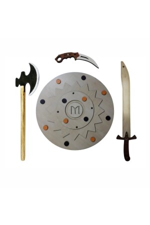 مجموعة الألعاب من 4 - SHIELD + AX + SWORD + KARAMBIT يمكن استخدامها لأغراض الألعاب والديكور. الخشب مقصود بالليزر. SHI
