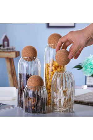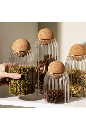 MNZ-4-piece Glass Jar مع غطاء الفخار ووعاء التوابل مجموعة كبيرة حجم الوعاء: 9x9cm ارتفاع:25cm المادة: الزجاج متوسط حجم الوعاء: 9