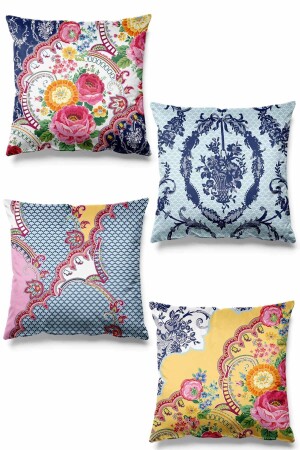 MNZ-Bohemian Design Flat Art Boho Style مجموعة من 4 أغطية مسادة من طراز الرموز الرقمية المطبوعة في ألوان البني والكريم