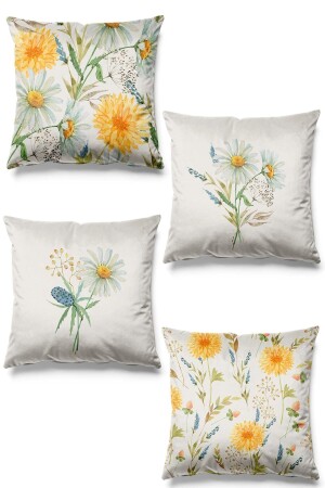 مجموعة من 4 غطاءات وسادة رمي سويد مع نمط ديزي مطبوع مزدوج الجانب