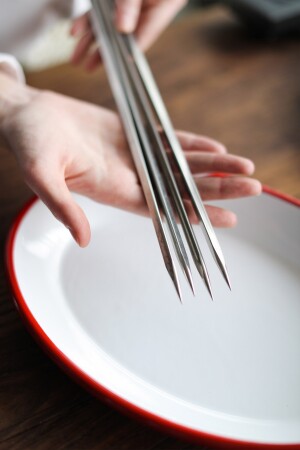 طول MNZ-Skewer: 38 سم سم سمك الحافة: 6 مم مواد: 304 فولاذ فولاذ 18/10 موقع الإنتاج: Türkiye