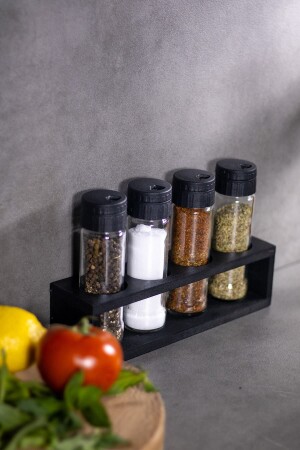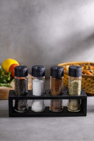 مجموعة من 4 ملحات زجاجية ومشعرات الفلفل ومشعرات العقاقير، منصة خشبية سوداء، حجم 105 مل، شاكر ملحات مغطاة بال