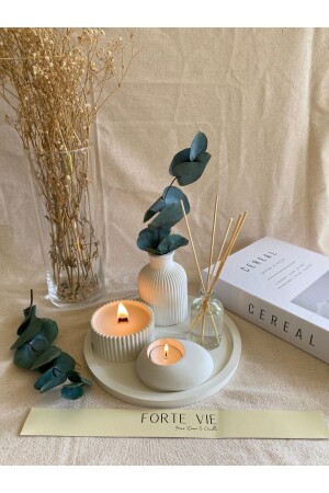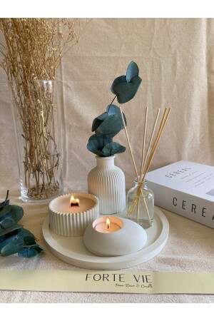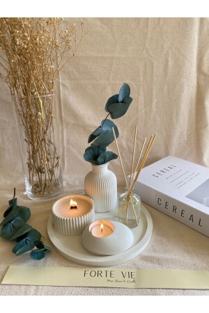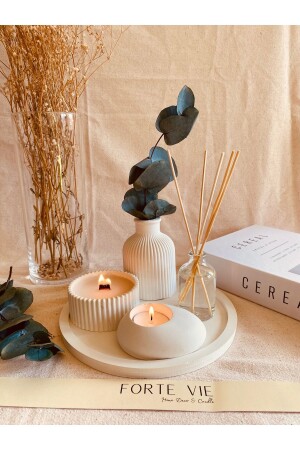 شمعة من الكنيس والفاحة ذات الروائح العطرية - شمعة من الصويا الخضار المزخرفة مع وعاء الخرسانة