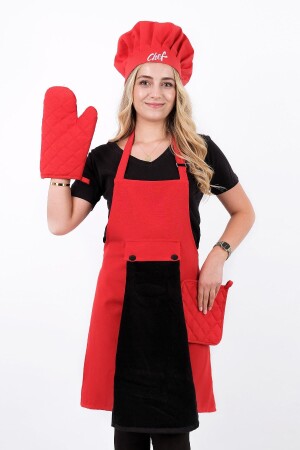Simple 3'lü Set Ayar Askılı Cepli Mutfak Önlüğü Seti (2 ELDİVEN) Şef Garson Kafe Aşçı Barista