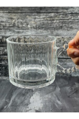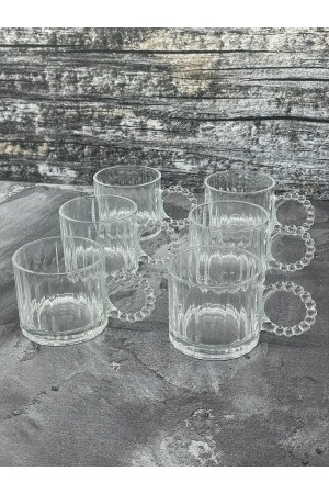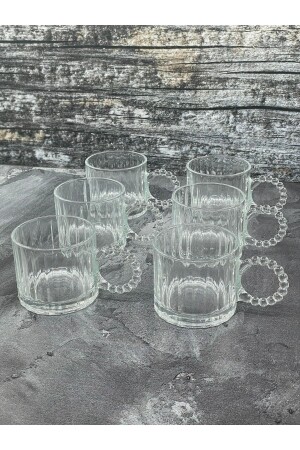 6 Lı Cam Boncuk Kulplu Bardak Kupa Çay Kahve Meşrubat Bardağı 325ml
