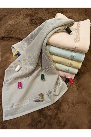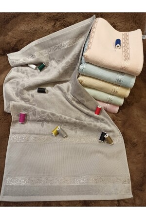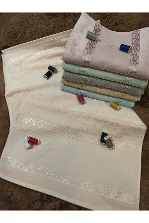 Güpürlü Saten Işleme Desenli Kutulu Lüks Çeyizlik 50x90 6'lı El Yüz Havlu Seti