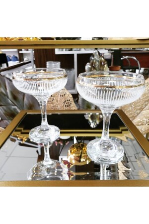 مجموعة من 6 أدوات من اليد مزينة بالذهب زجاجية مكملة بالآيس كريم طبق، وعاء كريم بالآيس كريم، وعاء خفيفة، الرهن 379