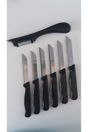 مجموعة من 6 سكاكين ثمرة سوداء لامعة وقطعة الجانب مع معقب القنب