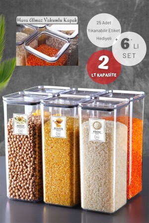 Duo Sızdırmaz Kapaklı Etiketli 380 Cc 6 Parça Saklama Kabı Kavanoz Seti Lav 6lı 380 cc
