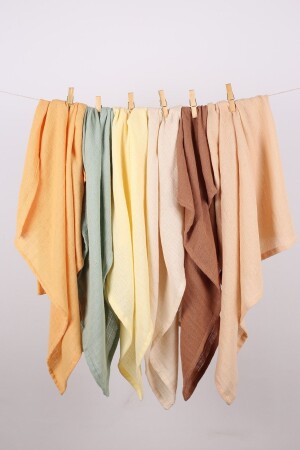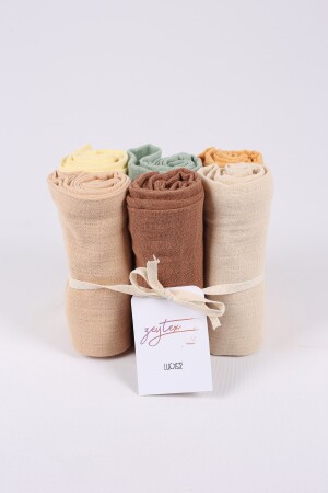 م.ن.ز- يتكون هذا المنتج من 6 مجموعات غطاءات المسلين في 6 ألوان مختلفة. يحتوي على أبعاد 75 × 75 سم. مصنوعة من 100٪