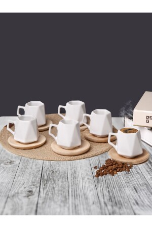 م.ن.ز-تتتكون من 6 كوبات قهوة و 6 كوبات صوصات قهوة خشبية. كوبات قهوة من السيراميك. صحن القهوة مصنوع