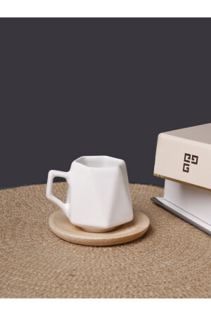 مجموعة من 6 كوبات قهوة بيضاء بريزم مع صوص خشبي