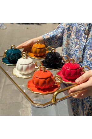 مجموعة من 6 كوبات قهوة ذات لون زنجبية فاخرة مع قوارب