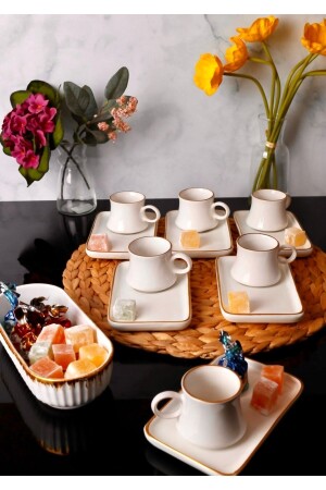 Sunum Tabaklı- Kahve Yanı Bardaklı 18 Parça 6 Kişilik Kahve Fincan Takımı- Seti