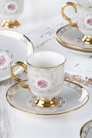 MNZ- Fiona مجموعة من 6 أكواب قهوة مجموعة محتويات 6 أكواب 6 صحن المواد لاستخدام طويل الأمد للتفاصيل من الفورسلين الذهب، يوصى بغسلها