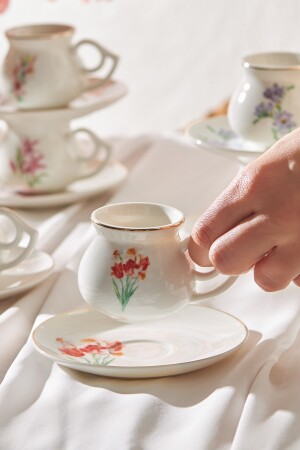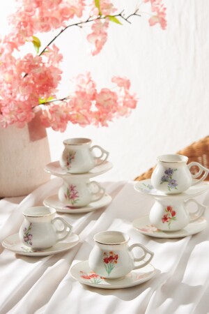 MNZ-Karaca نباتية مجموعة من 6 كوبات قهوة 80 مل مجموعة محتويات: 6 كوبات قهوة 90 مل 6 كوب صوصات المواد: البورتسلين