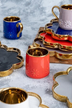 Sunum Tabaklı- Kahve Yanı Bardaklı 18 Parça 6 Kişilik Kahve Fincan Takımı- Seti