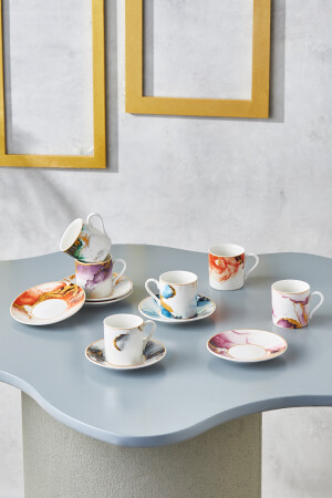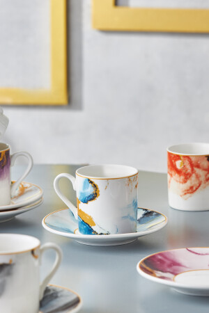 MNZ-Karaca Ateş 6 شخص كوب قهوة مجموعة 80 مل مجموعة محتويات 6 كوبات قهوة (80 مل) 6 كوب صوصات المواد: البورتسلين