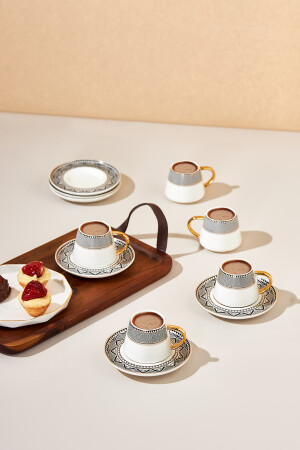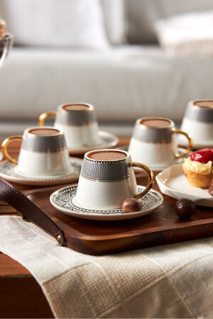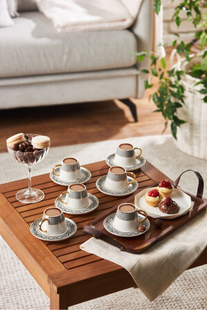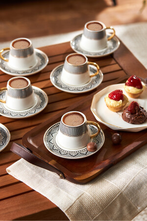 Sunum Tabaklı- Kahve Yanı Bardaklı 18 Parça 6 Kişilik Kahve Fincan Takımı- Seti