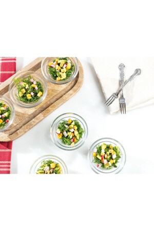 MNZ-Paşabahçe 6-piece Magnolia Glass Jar Magnolia Pudding Dessert Cup Bowl Set مع غطاء ملون
