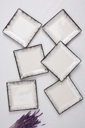 MNZ-ŞURAMUTFAK 6 قطع كعك لوحة مربع نمط أسود يد مزين 20 سم إعطاء تعليقات مصنوعة من مواد السيراميك. 6 قطع لوحة كعك 20