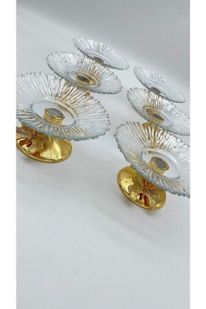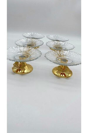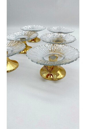 6 Adet Ayaklı Boncuklu Cam Lokumluk Şekerlik Drajelik Kahveyanı Çerezlik Sunumluk Ikramlık