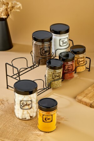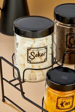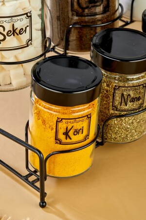12'li Kapağı Kendinden Kaşıklı Ve Etiketli Baharatlık Seti 300 ml Gold Etiketli Cam Baharat Takımı