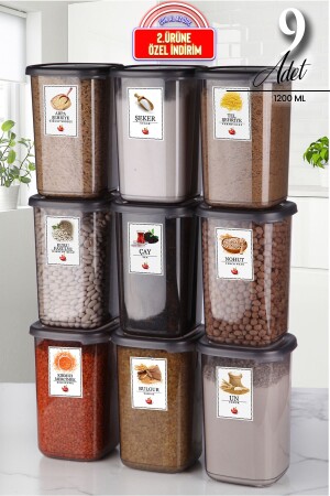 مجموعة من 9 علبة مع علامات مربعة حاويات تخزين الطعام 1200 مل - وعاء منظمة مع غطاء صلب TYC00733042975