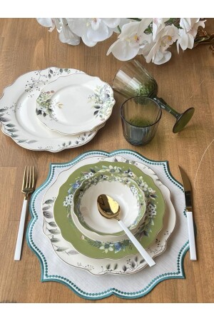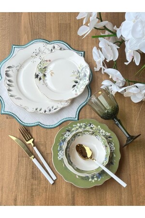 27 Parça İstanbul Green Flower Yemek Takımı