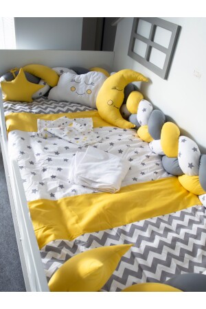 70x110 Park Beşiklere 10 Parça Bebek Uyku Seti - Kahverengi Ay Yıldız Desen (BEŞİ?K HARİ?Ç)