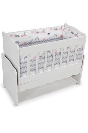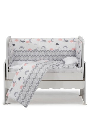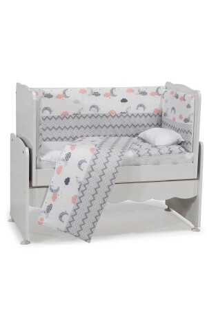 مجموعة نوم الأطفال ذات نمط زيغزاج رمادى من نوع MNZ-Aktehome 7 قطع مناسبة لـ 50x100 أبيض - رمادى 50x100 سم أبعاد السرير والك