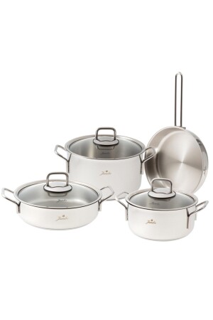 Bio Granit 7 Prç Istiridye Fildişi & Gold Kulp Tencere Ve Tava Seti EVTGR7PRÇEZMFİLDİŞİ