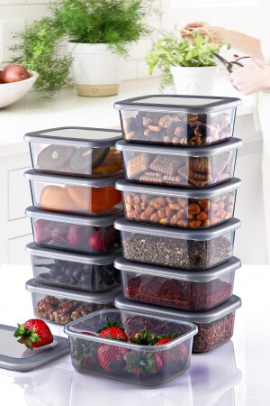 مجموعة MNZ من 12 700 مل حاوية تخزين الفراغ المربع 12Lİ_700ML_İDEA_VP186_KMPY