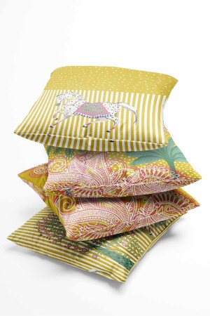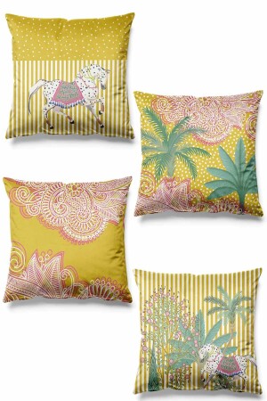 Afrika Temalı Kırmızı Sarı Renklerde Hediyelik 4'lü Dijital Baskılı Koltuk Kırlent Kılıfları
