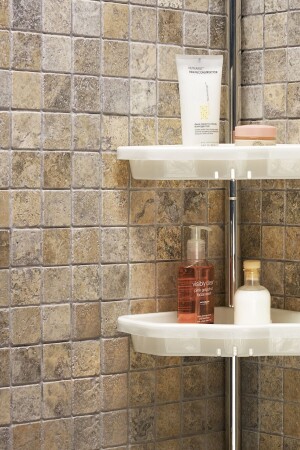 يستخدم لتقييم المناطق الزاوية في الحمام. يتم تركيبها بالضغط الربيعي. لا تحتاج إلى أدوات أو مسرعات للتجميع. قياسات الرف 25 × 25 سم