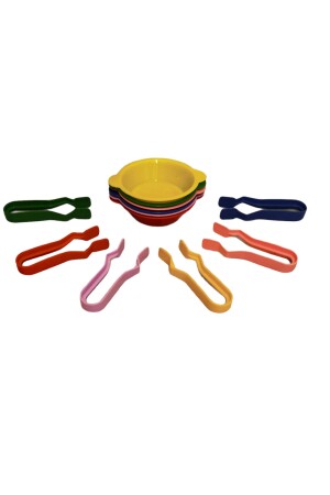 تتكون من 6 أكواب (أطباق) و 6 مصاصات (ألسنن) وتحتوي على 6 ألوان مختلفة. إنها مواد تعليمية مصممة لتعليم مفهوم تمارين مطابقة