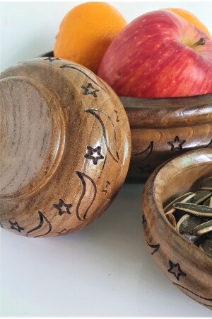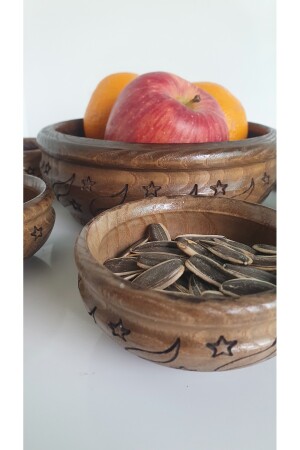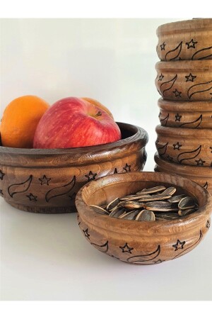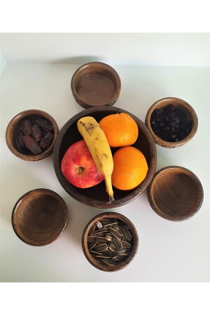 مجموعة من 7 كوكيز مع طلاء خشبي لا ينبغي غسلها في غسالة الأطباق إنها طلاء بالليزر إنها ملموسة إنها تتكون من وعاء كبير و 6 وعاءات صغيرة
