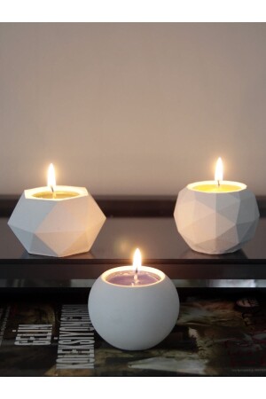 محفظة شمعة من الخرسانة من 3 - هدية تزيينية بيضاء خام