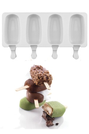 قماش مادة ماغنوم آيس كريم MNZ-Earabul و 50 عصا خشبية - 4 قوالب كبيرة عملية من قماش مادة ماغنوم سيليكون آيس ك