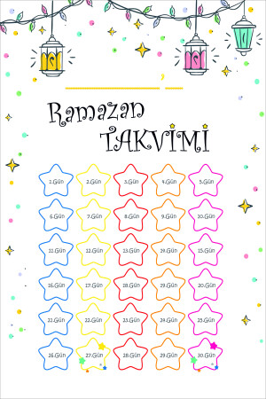 مخطط الصيام للأطفال - مخطط الصيام رمضان - ملصق رمضان 5 × 5