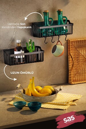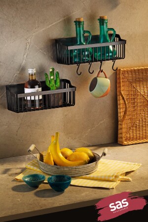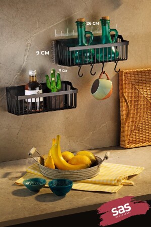 مرفق العداد الملتصق بالعطور داخل الخزانة منظم المطبخ - 2 قطعة منظم المطبخ بلاستيكي Tşp-01 أسود